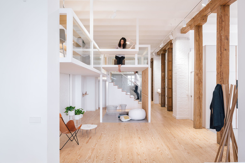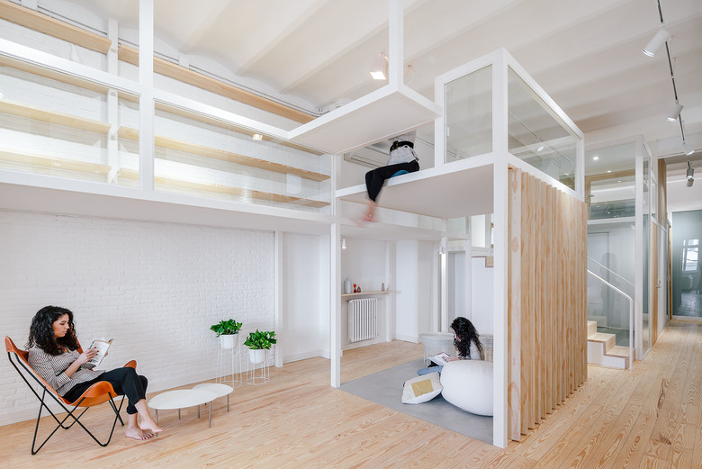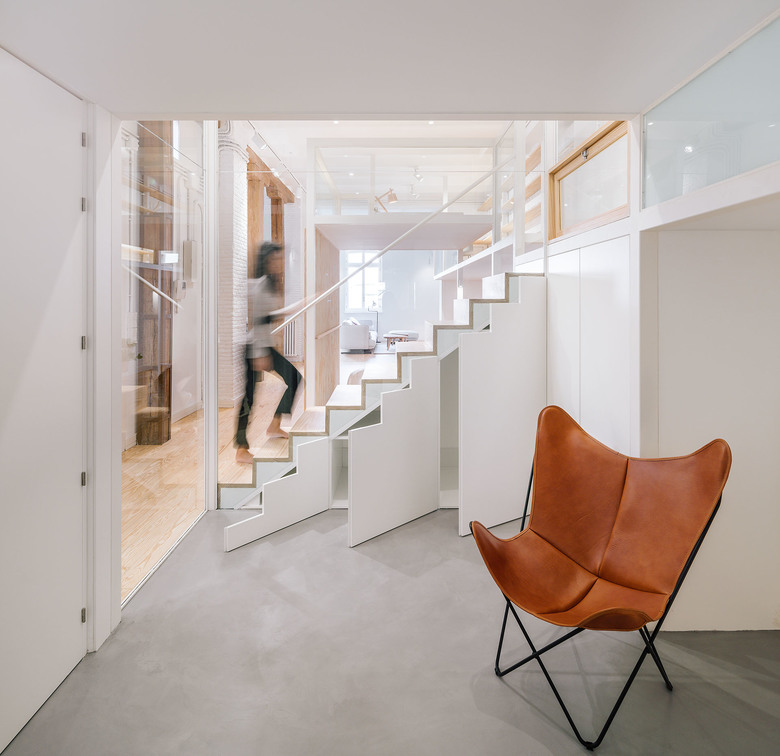 The different levels and heights work as furniture that change its use by the space they generate, being always linked by stairs or short corridors.