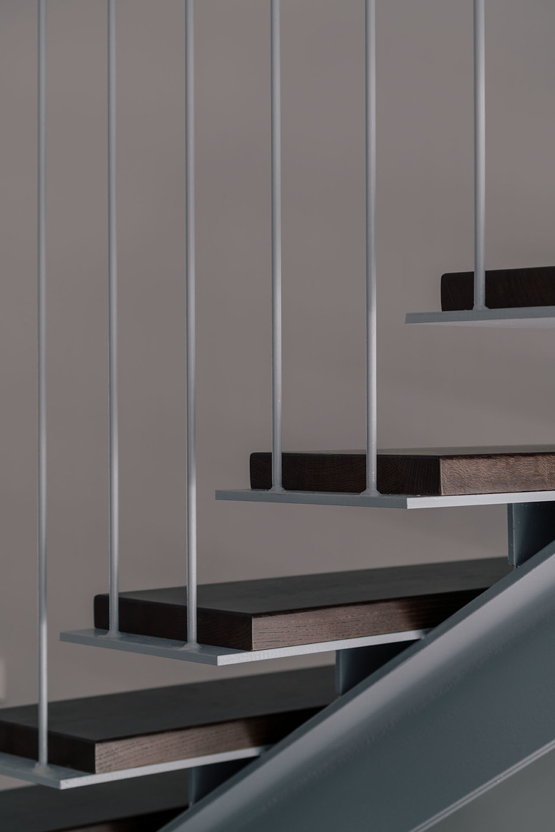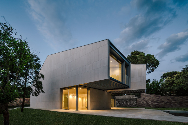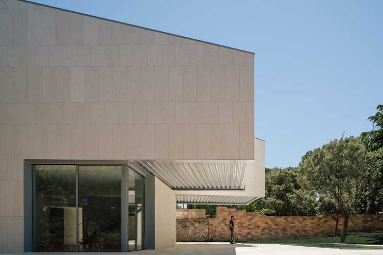 To provide solidity and forcefulness in contrast to the pronounced cantilevers, all the volumes are finished in limestone.