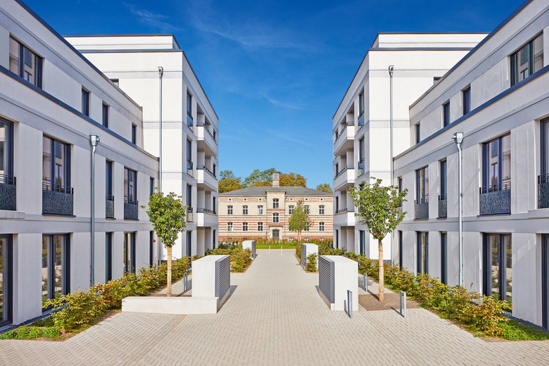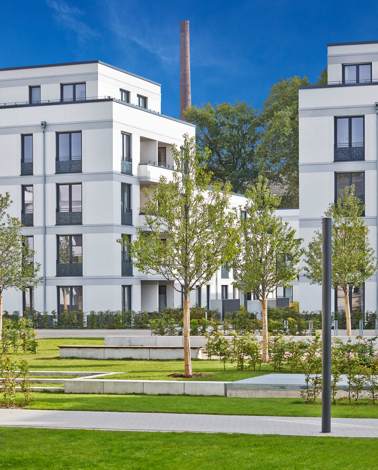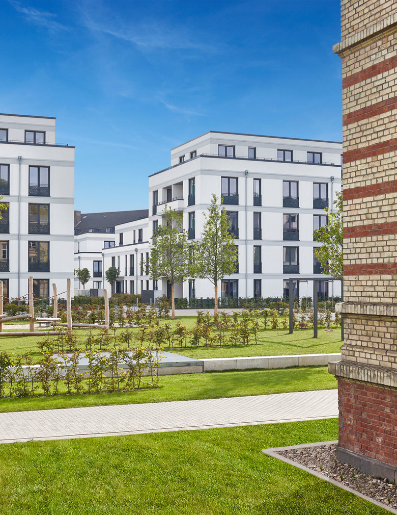 Mit dem neuen Wohnquartier Färberstraße ist aus einem historischen Karrée mit militärischer Vergangenheit der Lebensmittelpunkt für junge Familien entstanden. Das ehemalige, denkmalgeschützte Garnisonslazarett – die ursprünglichen Planungen gehen augenscheinlich auf den Berliner Architekten Martin Gropius zurück – bleibt zentraler Orientierungspunkt und Herzstück des Entwurfs.