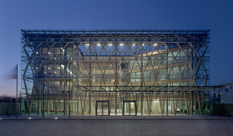 Wer die Vertretung des Landes NRW in Berlin sucht, macht sich auf den Weg durch das Diplomatenviertel, entlang an Macht und Mauern der Botschaften von fremden Staaten und Ländern. Die Landesvertretung wirkt dagegen wie die Ankunft in einer neuen Zeit. Mit diesem preisgekrönten Gebäude wird ein eigenwilliges, symbolisches Zeichen für Neuanfang und gebaute Nachhaltigkeit gesetzt. Der architektonische Entwurf des extrem leichten und flexiblen Holzparabel-Stahl-Glas-Geflechts steht für ein Meisterstück innovativer Ingenieurtechnik und begründet die Idee eines neuen gesellschaftlichen Miteinanders – NRW präsentiert sich als ein offenes Bundesland, das eng verwebt ist mit den Menschen. Mit gläserner Leichtigkeit stellt die Architektur eine Verflechtung der Gesellschaft mit dem Gebäude her und verleiht so einer zukunftsweisenden gesellschaftlichen Haltung Ausdruck.