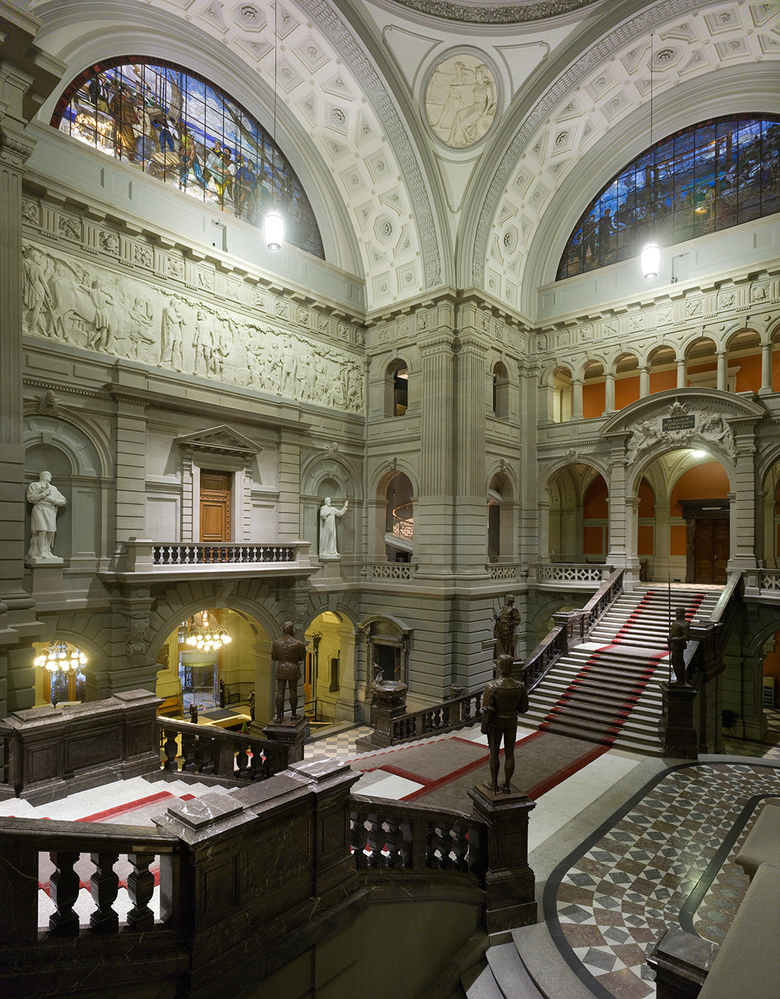 Das Parlamentsgebäude in Bern strahlt seit 2008 in neuem Glanz. Von Weitem sind die neu vergoldeten Kuppeln sichtbar. Vor allem im Innern aber hat sich das symbolträchtige Gebäude gemausert, das nach den Plänen von Hans Wilhelm Auer gebaut und 1902 eingeweiht worden war.