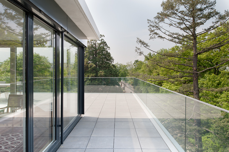 Auf der gesamten Gebäudelänge befinden sich beidseitig grosszügige Balkone, über verglaste Schiebetüren kann sich der Innenraum so nach aussen erweitern.