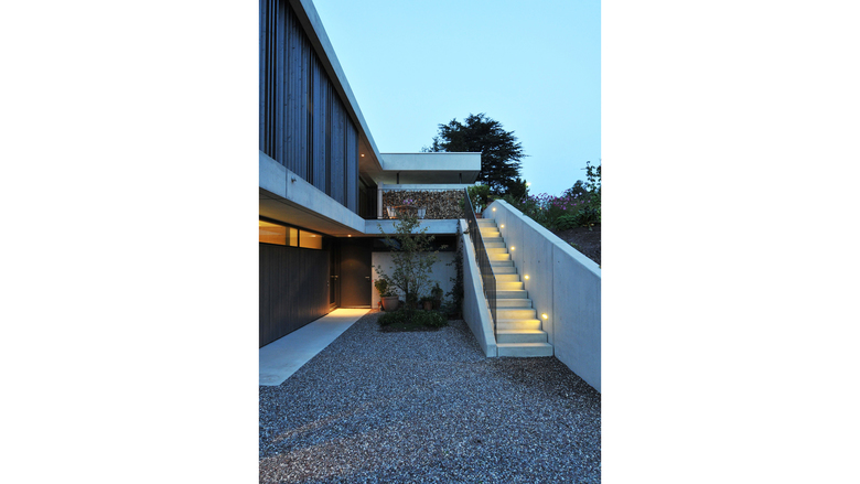 Der kleine Ort Murg befindet sich am südlichen Ufer des schweizer Walensees im Kanton St. Gallen. Das große, nach Norden hin abfallende Grundstück eröffnet dem Betrachter einen sensationellen Blick über den Walensee und die Schweizer Berge. So entstand hier ein Wohnhaus mit Hauptausrichtung nach Norden, welches dennoch Sonneneinstrahlung von Süden und Westen her erhält.