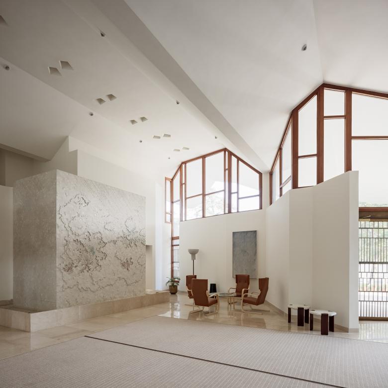 The renovation of this mythical masterpiece of Finnish modernism has brought the ingenious building complex back to its original glory. The 2-stage project consisted of a complete overhaul of technical systems, some functional updates, some changes to the compound’s entrance gates, as well as architectural work focusing on restoring the original spirit of the design and repairing misguided maintenance efforts both indoors and outdoors.