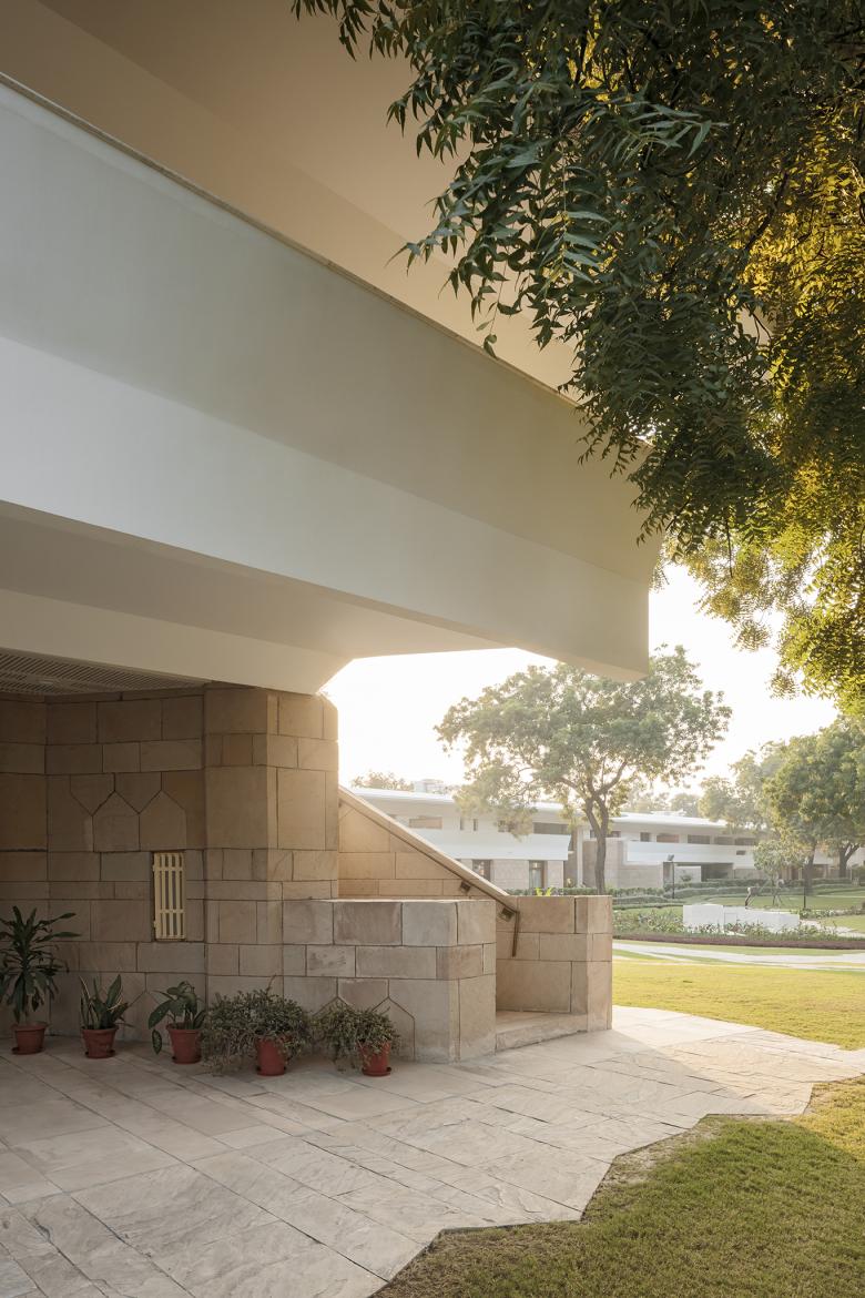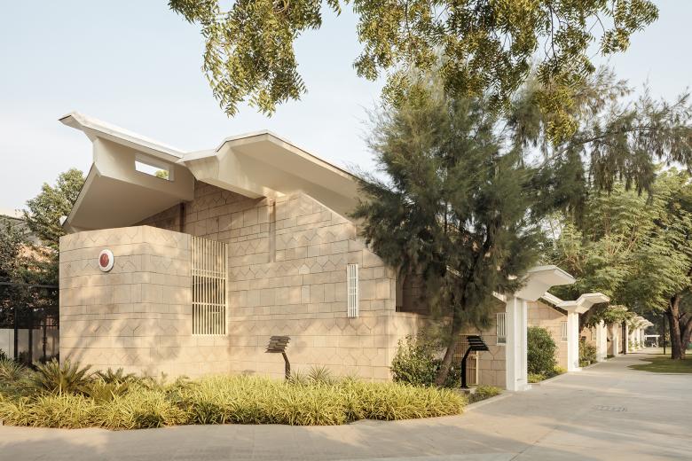 Architects Reima and Raili Pietilä won the competition for the Finnish Embassy to be located in the diplomatic enclave in Chanakyapuri in 1963 with a beautiful and powerful competition entry called “Snow speaks on the mountains”. The project was commissioned and redesigned based on the original concept in 1980, and the building was finally opened in 1986 with the large single expanse of roof of the 1960's design broken up into the six lateral separate buildings standing on the embassy compound today.
