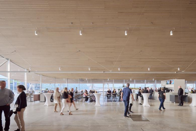 The events center is located on the border of the open port area and the existing urban grid of the city center. The new and the old urban structure interlink on the cusp of the newly developed site. The old port warehouses, shipping containers and wooden ships act as visual cues for the design, and result in an expressive, yet soft and subdued building.