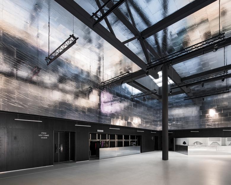 The concept of the Lappeenranta Theatre is exceptional: it has been built on the top floor of a shopping center. The idea, however, is ancient as this is theater coming back to its roots, back to the marketplace, back to the people. The visitors to the shopping center will be able to enjoy a variety of plays, while the restaurants cater for intermissions and the adjacent hotel offers accommodation. The foyer of the theater, accessible only from and opening to the shopping arcade, has a calm monochromatic atmosphere in contrast with the bright colors of the arcade below. Only an undulating wire mesh curtain separates it from the shopping areas.