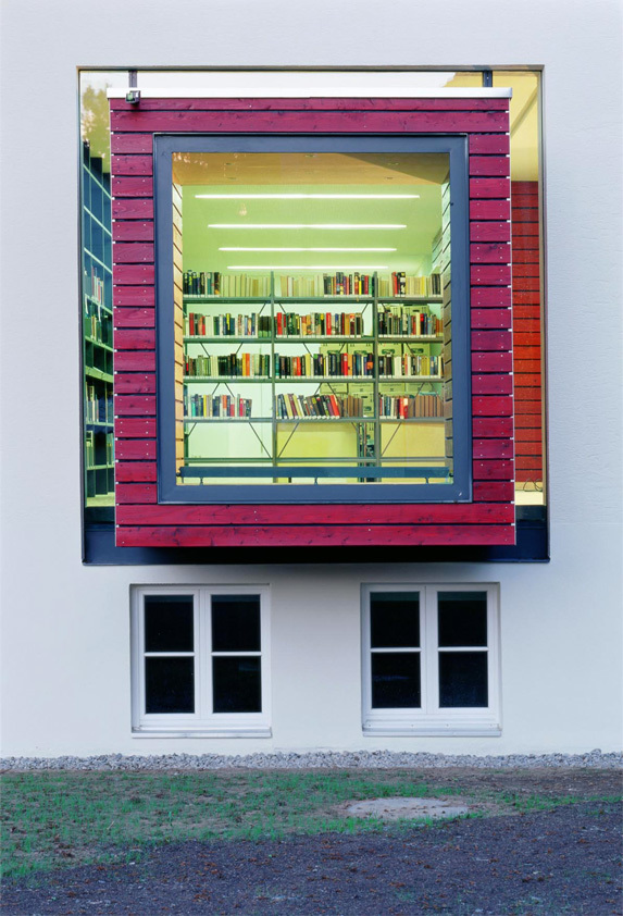 Die flächige Anordnung der Bibliothek und das Dringen des Besuchers durch mehrere bauliche Schichten und somit durch unterschiedliche historische, gestalterische und atmosphärische Schichten, sind Spiegel einer sich verändernden Gesellschaft. Das Spiel von extrovertierten und introvertierten Räumen, die skulptural ausgeformte Mitte um das Bistro und die Information, der Lichthof für Lesungen sowie die Bücherarche der Kinder laden zum neugierigen Flanieren ein.