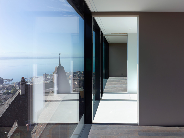 L’articulation des niveaux dégage de vastes espaces extérieurs. Les appartements jouissent d'un rapport rare à la nature, entourés par le feuillage des arbres et s'ouvrants sur le panorama grandiose offert par le lac et les Alpes.