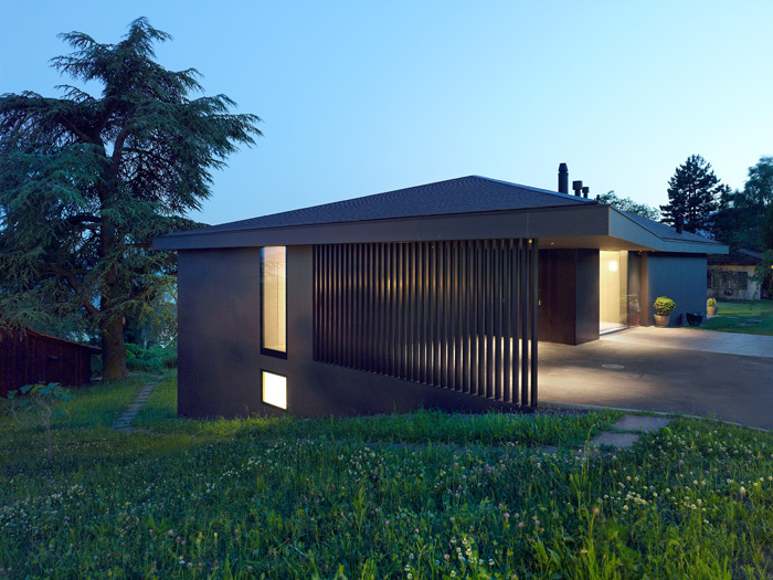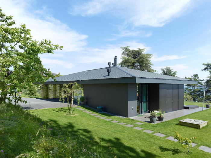 Le projet s’implante dans un pré en limite de zone urbaine, bordé d’une part de constructions individuelles et collectives et d’autre part par le vignoble. Dans ce contexte en évolution, érodé par le développement, la maison cherche à intégrer ce site et préserver les qualités de son environnement.