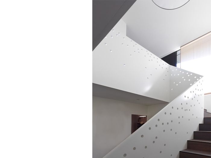 Le rapport au sol est évident. L’entrée et les prolongements extérieurs de la cuisine et de la salle à manger ont un accès direct de plain pied.