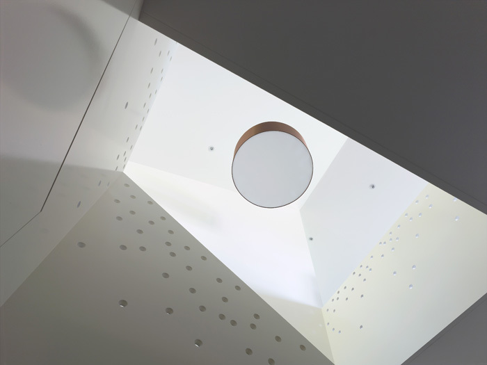 Les espaces de jours se développent entre le socle et la toiture. Ils profitent de la générosité volumétrique dégagée par un système porteur astucieux ; les fonctions sont délimitées par des éléments abritant les meubles de cuisine, des rangements intérieurs et extérieurs, le bureau et les services qui intègrent la structure porteuse.