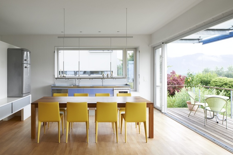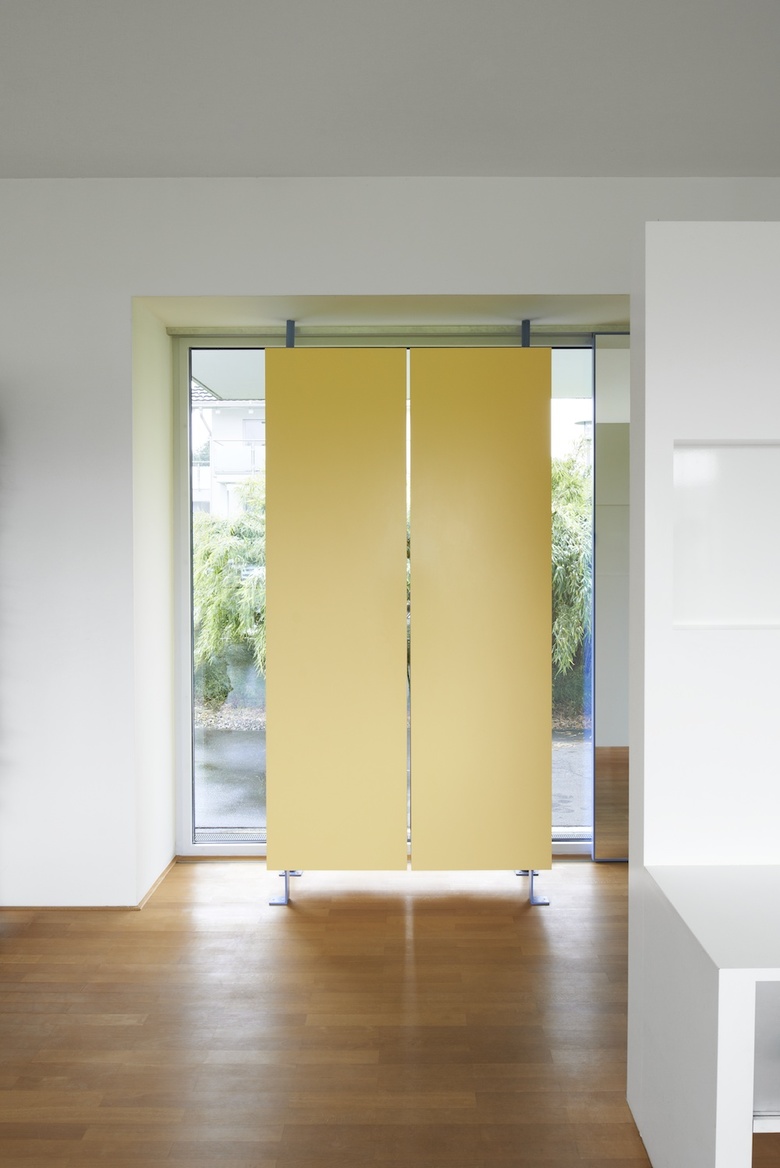 Das Erdgeschoss beinhaltet einen einzigen grossen Raum mit 3 m Raumhöhe. Die technischen Hilfsmittel wie Küche, WC, Treppen, Garderobe und Schränke sind peripher angeordnet, damit die Wirkung des grossen Raumes erhalten bleibt. Spezielle Bedeutung kommt dabei der Küche zu. Diese wurde in das grosse Ostfenster integriert und so zurückhaltend gestaltet, damit sie nicht den ganzen Raum bestimmt. (Details siehe Loftküche)
