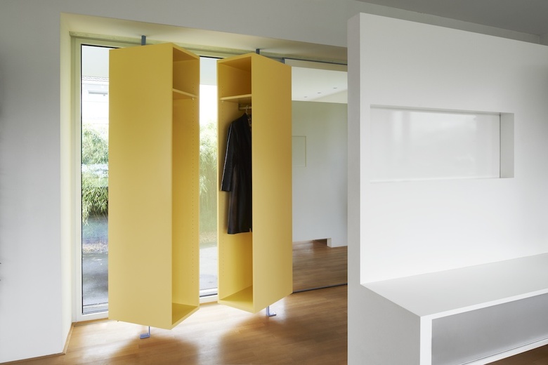 Das obere Stockwerk beinhaltet intimere Räume. Über die Treppe erreicht man den 11,20 langen und 2,35 m breiten oberen Wohnraum, von dem aus die beiden Schlafzimmer, das Bad und das WC erschlossen sind. Mittels einer Drehtüre kann von diesem Raum ein Gästezimmer abgetrennt werden. Da Duschkabinen rutschgefährlich sind, ist die Dusche als Raumbestandteil des Bades ausgebildet mit einer in der Decke eingelegten Führungsschiene für einen Vorhang. Um Verletzungen am Fuss zu vermeiden, ist die Badewanne ist auf einem Betonkonsolenring aufgelagert.