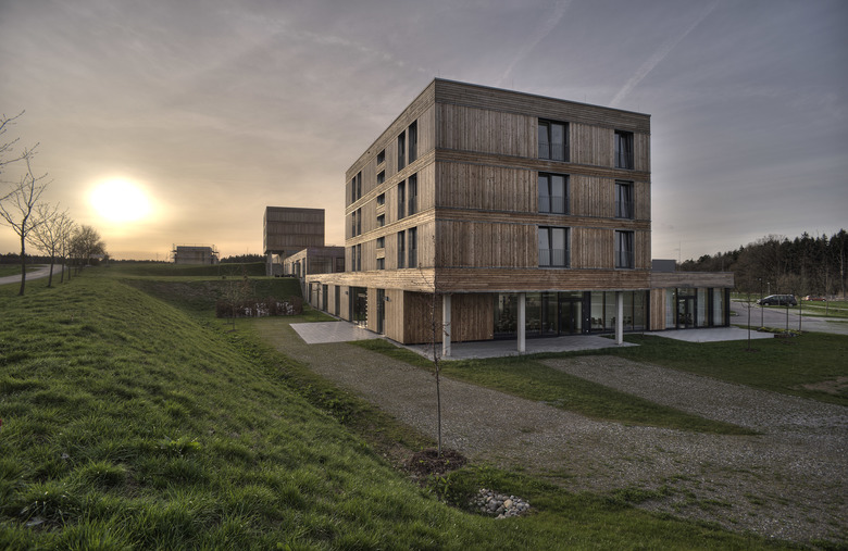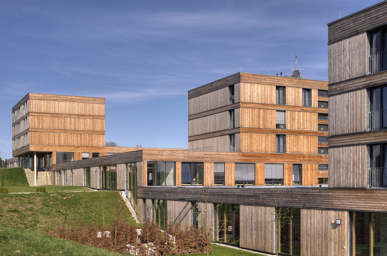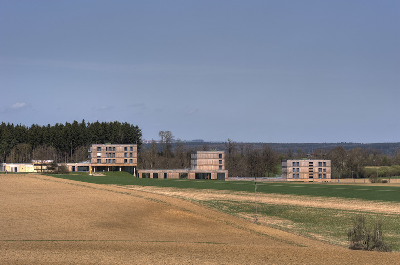 Die Wohnbereiche der Patienten wurden in drei überschaubare kubische Einheiten aufgeteilt, welche auf das Sockelgeschoss gestellt wurden. Dies führt zu einer klaren Ablesbarkeit der Funktions- und Wohnbereiche und darüber hinaus zu der gewünschten Maßstäblichkeit des gesamten Bauwerks. Die Wohnbereiche sind direkt an die Magistrale angeschlossen und erlauben durch großzügige französische Fenster von allen Räumen den freien Blick in die schöne oberschwäbische Landschaft.