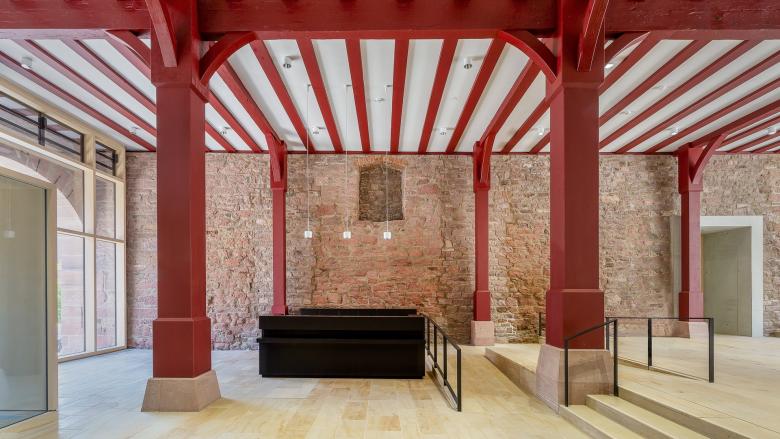 Die wuchtigen Massivwände aus rötlichem Sandstein und die imposante Holzkonstruktion mit den mächtigen Stützen auf Sandsteinsockeln verliehen der Markthalle ihren unverwechselbaren Charakter. Dieses Ambiente wurde durch den Rückbau der nicht denkmalgeschützten Umbauten wieder hergestellt.