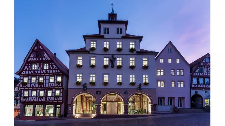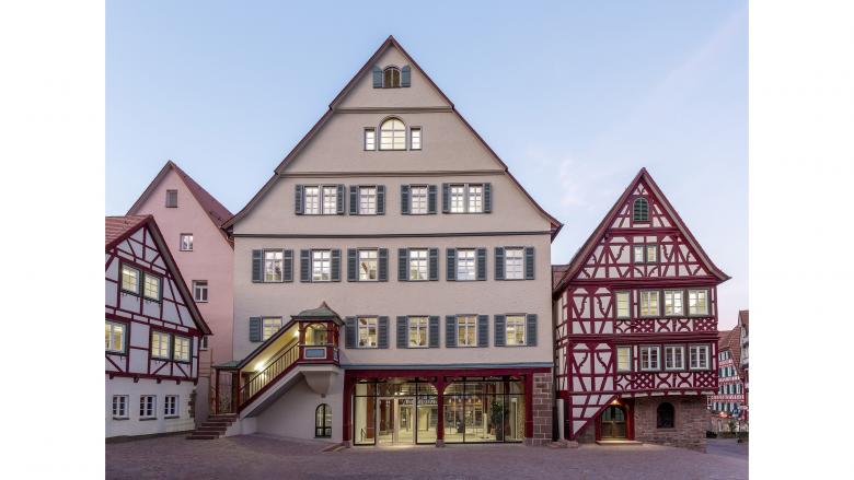 Das Rathaus Calw bildet den Mittelpunkt eines wertvollen, unter Denkmalschutz stehenden Gebäudeensembles, das zur Stärkung der kommunalen Identität zu einem modernen, transparenten und barrierefreien Dienstleistungszentrum entwickelt wurde.