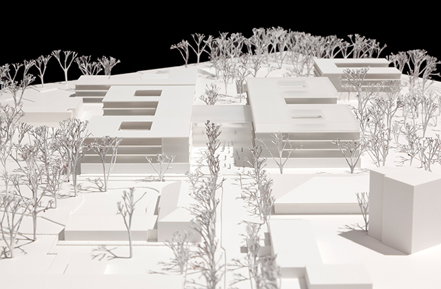 Die Modellfotos zeigen die Neubauten des Diagnose Therapie- und Forschungszentrums (DTFZ) des LVR-Klinikums Düsseldorf. Die 367 Betten umfassenden Neubauten beinhalten zukünftig Behandlungsangebote der Allgemeinpsychiatrie, der Gerontopsychiatrie, der Neurologie und für Abhängigkeitserkrankungen. Neben den Pflegestationen werden Untersuchungs- und Behandlungsbereiche, Labore und ein Hörsaal geplant. Der Neubau eines Parkdecks mit rund 180 Pkw-Stellplätzen ist ebenfalls Bestandteil der Gesamtmaßnahme. Das geschätzte Investitionsvolumen beträgt rund 76 Mio €.