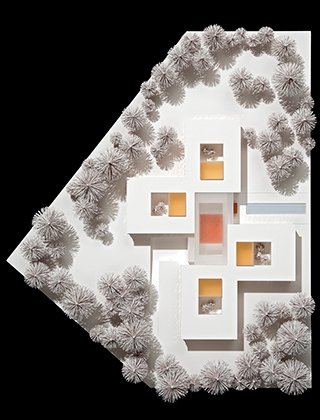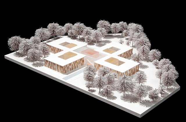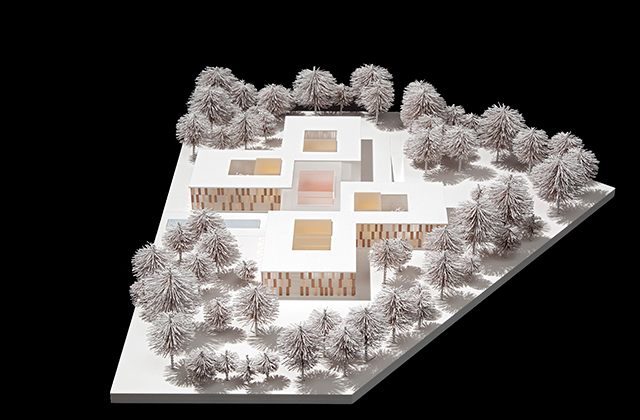 Beim international besetzten Wettbewerb des Landschaftsverbandes Westfalen-Lippe erreichte RDS Partner den 6. Rang für den Neubau eines Kranken- und Rehabilitationsgebäudes für die LWL-Klinik Dortmund. Die städtebauliche Figur wird durch eine windmühlenartige Anordnung der Stationen um einen zentralen Kern gebildet. Die einzelnen Stationen verzahnen sich mit dem Freiraum der umgebenden Parkanlage. Es entsteht eine kompakte Form, die zum einen den wirtschaftlichen Betrieb der Anlage ermöglicht und zum anderen die Parkanlage integriert und schont. Der zentrale Eingang ist auf die Hauptachse der Gesamtanlage ausgerichtet und wird durch eine begleitende „Wasserachse“ akzentuiert. Die Parkanlage wird weitestgehend in ihrem Charakter bewahrt und mit dem Baukörper verzahnt. Der Vorplatz wird in der Fußbodengestaltung bis in die Eingangshalle geführt und bildet eine Einheit zwischen Innen und Außen. Die „Wasserachse“ wird aus Sicherheitsaspekten in Form eines Wasserfilms auf einer horizontalen und ebenen Fläche ausgebildet. Der Charakter der Parkanlage wird auch in den Innenhöfen thematisiert und weitergeführt. Die dreigeschossige Anlage mit ihrer extensiven Dachbegrünung fügt sich behutsam in die Gesamtanlage mit der prägenden Parklandschaft ein. Die Stationen sind funktional klar ablesbar und ermöglichen eine gute und sichere Orientierung für die Patienten. Der Haupteingang wird als eine dreigeschossige Halle mit Info-Point und Wartebereich einladend gestaltet. Vom Haupteingang nicht einsehbar, sind die Liegendkrankenanfahrt und die Ver- und Entsorgung im Untergeschoss angeordnet. Die Wegeführung auf den Stationen ist als Umlauf mit Innenhof konzipiert. Der Innenhof ermöglicht eine natürliche Belichtung und Belüftung der Räume und Flure im Innenbereich. Darüber hinaus wird eine gute Einsehbarkeit ermöglicht sowie eine natürliche, freundliche und wohnliche Atmosphäre erzeugt. Zum Eingangsbereich einer Station orientiert, einsehbar vom Stützpunkt, sind der Speiseraum, die Küche und die Tagesräume angeordnet. Diese Funktionen bilden gemeinsam eine Art „Marktplatzsituation“. Die Wände in diesem Bereich können flexibel gestaltet werden, um verschiedene Nutzungsmöglichkeiten zu bieten. Hier sind auch der Besucherraum, das Sekretariat und der Wartebereich platziert. Im anschließenden Bereich der Station sind die Patientenzimmer mit den dazugehörigen Funktionsräumen gelegen. Somit entsteht eine klare und funktional ablesbare Zonierung im Grundriss.