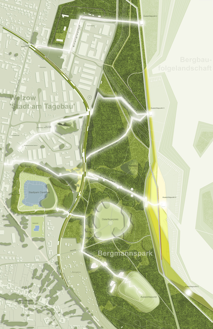Die Konzeption und die Nutzungsangebote des Bergmannparks wurden über einen Zeitraum von mehr als 2 Jahren in enger Abstimmung mit den Welzower Bürgern entwickelt. Mit der ‚Gleispromenade‘ wurde nach dem 'Kirschblütenzimmer' der 2. Bauabschnitt des Bergmannparks Ende 2014 fertiggestellt.