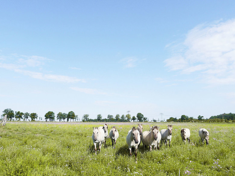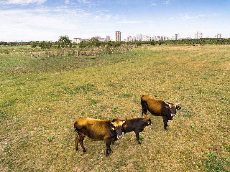 Parkpflege und Landwirtschaften – Die Parkpflege für 65 ha würde mit gärtnerischen Standards einschließlich Müllentsorgung und Regie mehr als eine halbe Million EUR im Jahr kosten. Daher war im Sinne der Nachhaltigkeit von Anfang an das Ziel gesetzt, ein Planungs- und Gestaltungskonzept zu entwickeln, das mit deutlich geringerem Mitteleinsatz dauerhaft abgesichert ist. Dies gelingt durch die Pflege der neuen Landschaftsbausteine mittels extensiver Beweidung mit Wildpferden und Wildrindern. Die gärtnerische Pflege beschränkt sich auf das Wegenetz mit den Begleiträumen und den Stationen sowie ausgewählten Wiesenflächen, die für die allgemeine Nutzung zur Verfügung stehen. Die Betreuung der Wildpferde und Wildrinder übernimmt ein Landwirt aus Schönefeld.