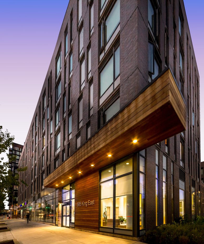 This Toronto Community Housing Corporation affordable housing development comprises a three building complex with 243 family units. The development will provide 128 units designated for seniors and senior-couples. This project is the first development underway in the West Don Lands Development Area.
