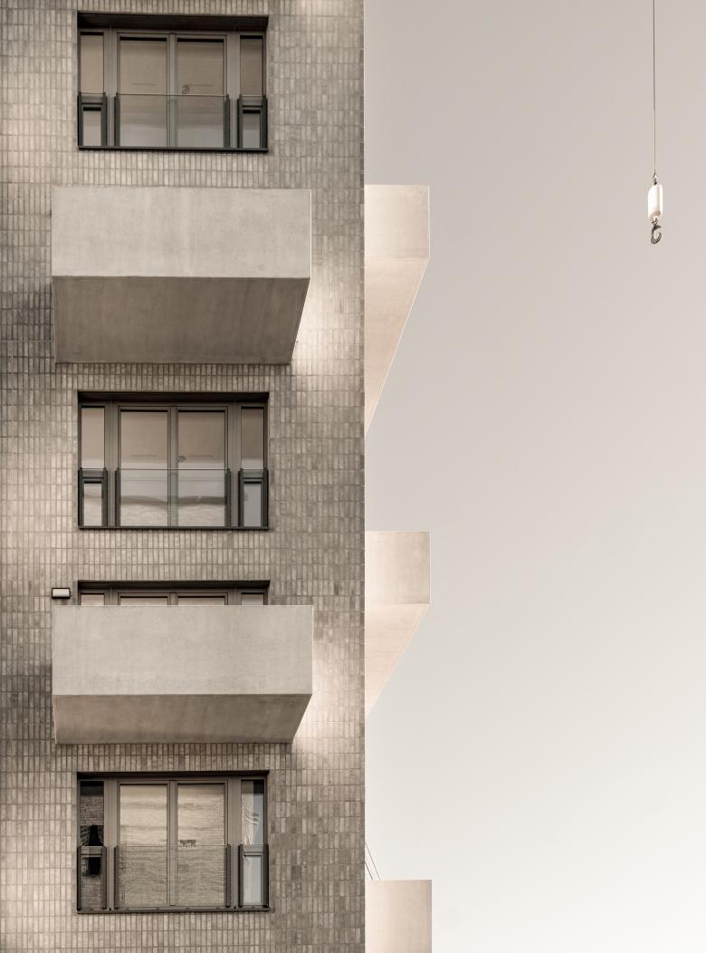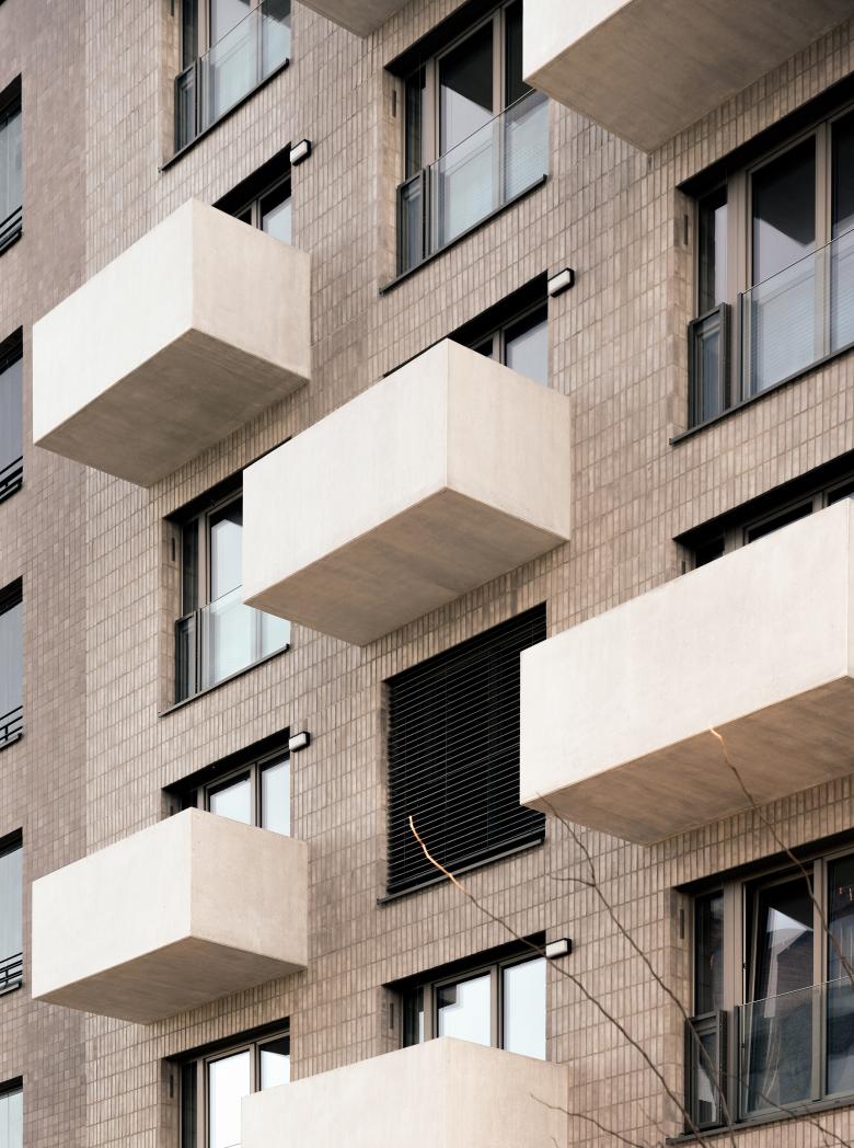 Das Ergebnis eines hochbaulichen Realisierungswettbewerbs bildet die Grundlage für die Blockrandbebauung im östlichen Teil der HafenCity Hamburg. In doppelter Wasserlage an der Elbe liegt das 24 ha große Quartier Neuhavn, auf dem unterschiedliche Wohnungstypologien, Büro- und Gastronomieflächen realisiert werden. Das städtebauliche Umfeld ist geprägt durch die Wasserlage sowie die Nähe zum Liselotte-von-Rantzau-Park und den U-Bahnhöfen HafenCity Universität und Elbbrücken. Das von DFZ realisierte Baufeld 84a besteht aus insgesamt drei Gebäudeteilen: Das siebengeschossige Haus 1 liegt orthogonal zwischen Hafenbecken und Bahntrasse. Neben 32 frei finanzierten Wohnungen befinden sich hier zwei zum Wasser ausgerichtete Townhouses sowie die Räumlichkeiten der Loki Schmidt Stiftung. Letztere beherbergt neben den Büroräumen, eine Galerieebene sowie eine Ausstellungsfläche im Warftgeschoss mit Zugang zur Uferpromenade. In den parallel zur Versmannstraße ausgerichteten Baukörpern (Haus 2+3) befinden sich neben den 62 geförderten Wohnungen, Büroflächen sowie ein Café im Erdgeschoss. Das äußere Erscheinungsbild des Ensembles wird durch eine Riemchenfassade im Sonderformat geprägt. Die Fassade von Haus 1 ist mit einem schmalen Klinkerriemchen im Hochformat versehen, das die vertikale Ausrichtung des Gebäudes betont. Bei den Häusern 2+3 kommt ein quadratisches Riemchenformat zum Einsatz, das im Erdgeschoss und im Bereich der Fensterflächen durch vor- und rückspringende Steinreihen akzentuiert wird. In Kombination mit den dunklen Metallbauteilen und den Glasflächen tritt der helle Klinker deutlich in den Vordergrund. Das Gesamtkonzept verbindet klare architektonische Stringenz mit einer differenzierten Materialwahl und Fassadengestaltung, die die unterschiedlichen Nutzungen ablesbar macht und das Erscheinungsbild prägt. Die Häuser 2+3 werden unter Berücksichtigung der Förderrichtlinien der IFB realisiert. Das Projekt ist mit dem HafenCity Umweltzeichen Platin ausgezeichnet.