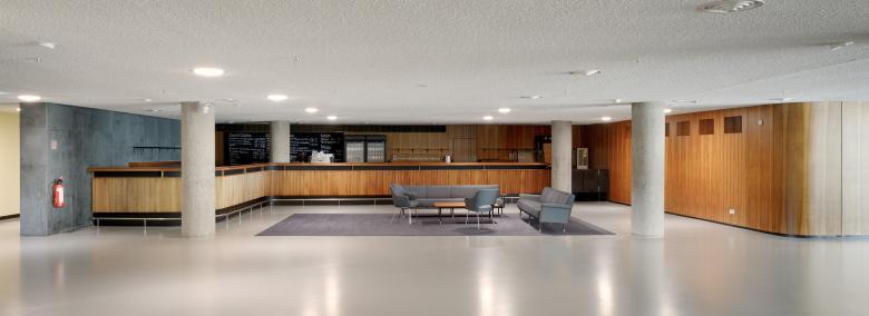 Das Haus der Kulturen der Welt – auch bekannt als „Schwangere Auster“ – wurde zur Internationalen Bauausstellung INTERBAU 1957 als Kongresshalle nach einem Entwurf von Hugh A. Stubbins errichtet. Heute ist das denkmalgeschützte Gebäude ein Ausstellungsort für internationale, zeitgenössische Künste und ein Forum für aktuelle Entwicklungen und Diskurse. Die zweite Teilinstandsetzung und Modernisierung umfasst neben sicherheitsrelevanter Maßnahmen im Wesentlichen die Modernisierung des Auditoriums und des Vortragssaals, die Flexibilisierung der historischen Bestuhlung in den beiden vorgenannten Räumen, die Installation eines neuen Wegeleitsystems, und die Instandsetzung der Hirschfeldbar sowie die Neuerrichtung einer Ausstellungshalle. Dabei steht der behutsame Umgang mit der denkmalgeschützten Bausubstanz im Vordergrund. Zahlreiche Einbauten und Oberflächen werden restauriert, verbleiben im Original und erhalten so den ursprünglichen, historischen Charakter des Gebäudes. Die Holzelemente des Auditoriums, der Hirschfeldbar im unteren Foyer sowie der Garderobe im oberen Foyer werden abgetragen, aufgearbeitet, gereinigt sowie mit neuester Technik versehen. Das neukonzipierte Wegeleit- und Informationssystem für die öffentliche Bereiche erfolgt über Projektionen auf ausgewählte Wand- und Bodenflächen. Zur weiteren Orientierung werden zusätzliche Raumbeschriftungen angebracht, die sich an dem historischen Vorbild orientieren und im Aluminiumgußverfahren hergestellt werden. Das Konzept setzt auf eine Fortschreibung und Weiterentwicklung der Qualitäten des Hauses, insbesondere der Offenheit, der fließenden Übergänge und inszenierten Raumfolgen.