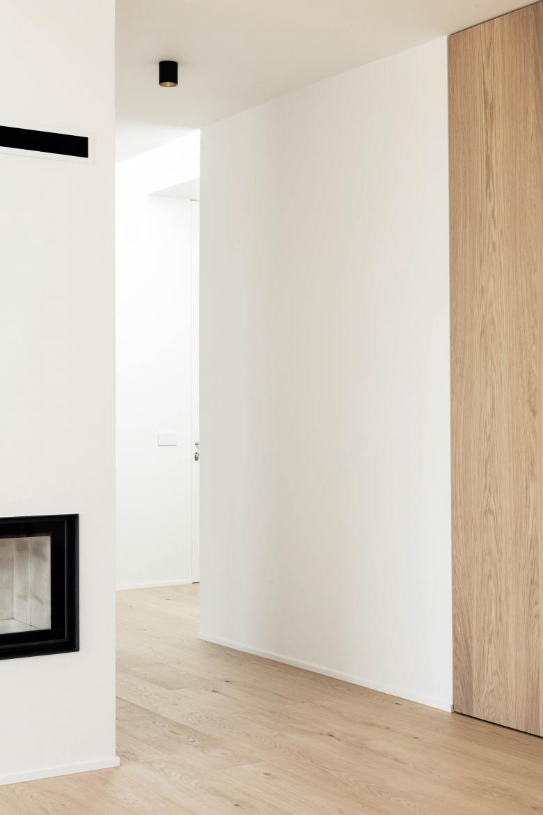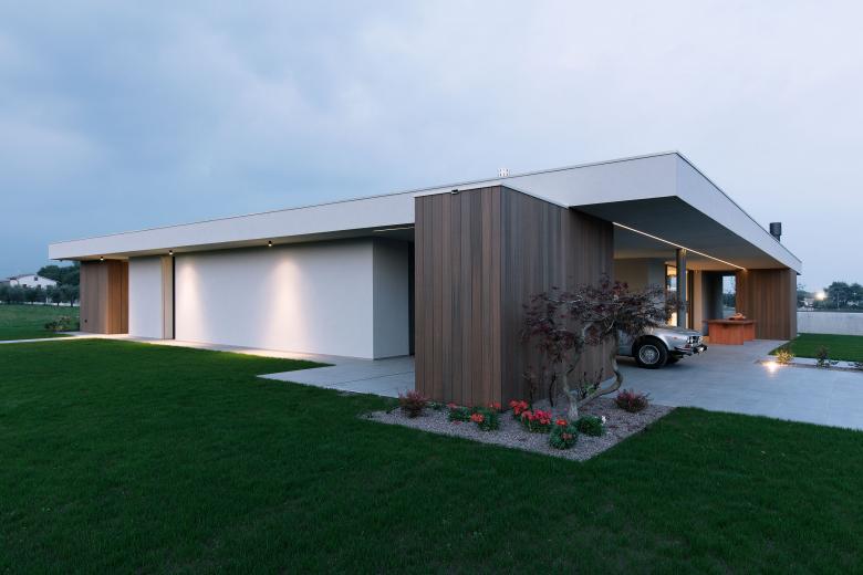 L'edificio è disposto in tre volumi definiti dalla destinazione d'uso e raggruppati sotto un'unica copertura piana. L'impianto distributivo trova luogo nello spazio tra i tre volumi. Il soggiorno è caratterizzato da una doppia altezza da cui penetra luce naturale zenitale.