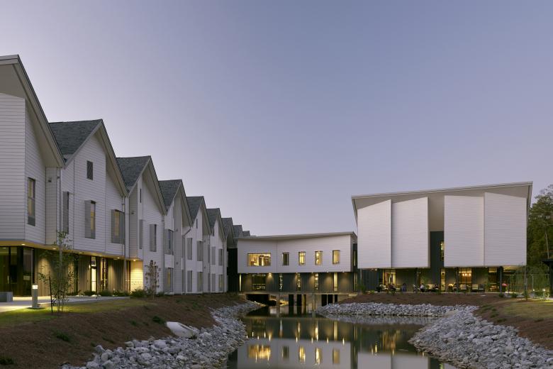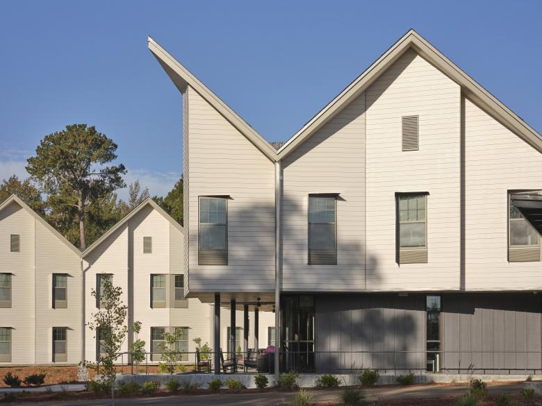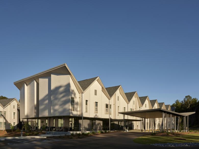 Cooperwood Senior Living is an 80-unit, 76,783-square-foot assisted and memory-care living community sited on the southern portion of a 16-acre site in Flowood, Mississippi. The senior living complex is the first phase of the masterplan for the property which incorporates walkable commercial and retail spaces. The symbiotic planning will include healthcare, dining, and shopping provisions for the assisted living residents and the local community.