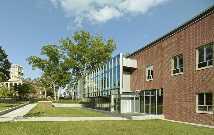 Dumas Hall has served as the university library, science building, and as a general classroom building. It is located along the eastern side of the center campus green, between the historic president’s house and chapel, and a porch-fronted row of two-story brick residence halls to the west.