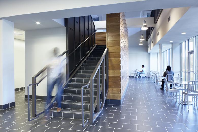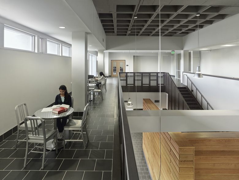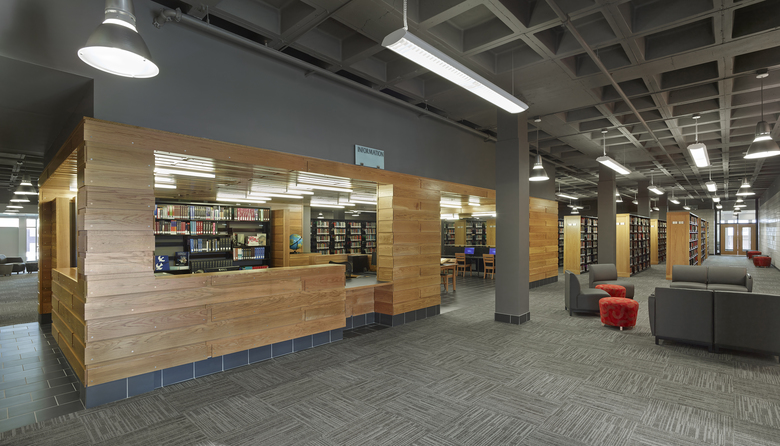 The design strategy was clear – turn the building inside out by moving the stacks to the shadowed interior of the building and opening the perimeter to reading rooms and classrooms. The corners of the building were removed and new two-story glazed corners create light-filled reading and collaboration spaces, inviting patrons to both inside and out.