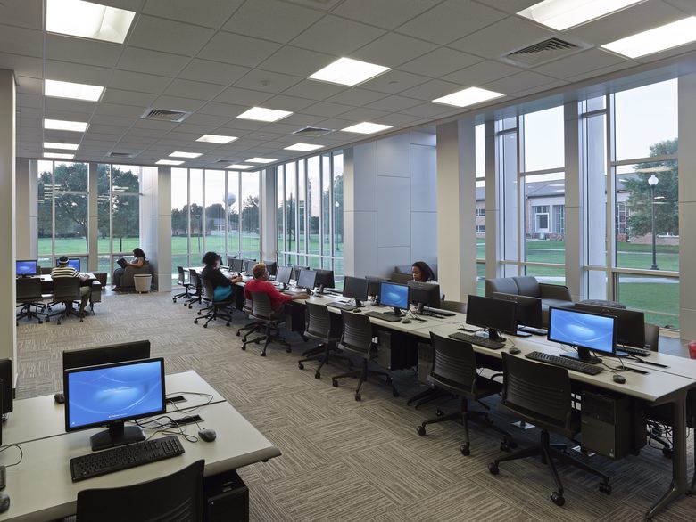 The James H. White Library was sited and built at the center of campus and was designed to be the academic and social locus in this expansive flat landscape in the Mississippi Delta. Over the years, the 75,754 square foot building had fallen into disrepair and out of sync with the needs of a modern library. Very few students or faculty could be found in the library at any time. Even with a limited budget, the building required a full re-envisioning as a modern library to once again fulfill its mission as the academic and social center of campus.