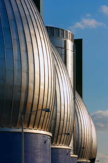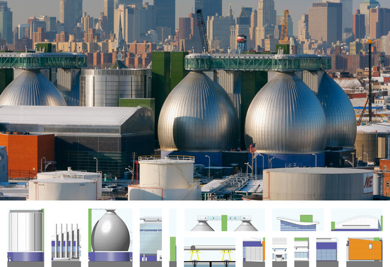 The master plan for this wastewater treatment plant outlines $4.5 billion in new construction over 25 years, to replace an outmoded and environmentally unsound facility. Constructed in phases, the plant remains fully operational throughout the process. The design employs building forms, materials and color as well as perimeter fencing, aerial walkways and bridges as ordering devices to link the structures into a comprehensible and striking visual composition. Expanses of glass display and demystify the wastewater treatment process and provide natural light in machinery rooms. The need to balance the requirements of a large-scale water pollution control plant with the concerns of the surrounding community was critical. The master plan embraced the community’s desire for waterfront access: a waterfront park at the site was designed in collaboration with the artist and sculptor George Trakas, with provisions for extending the concept all along Newtown Creek as the area develops away from strictly industrial use.
