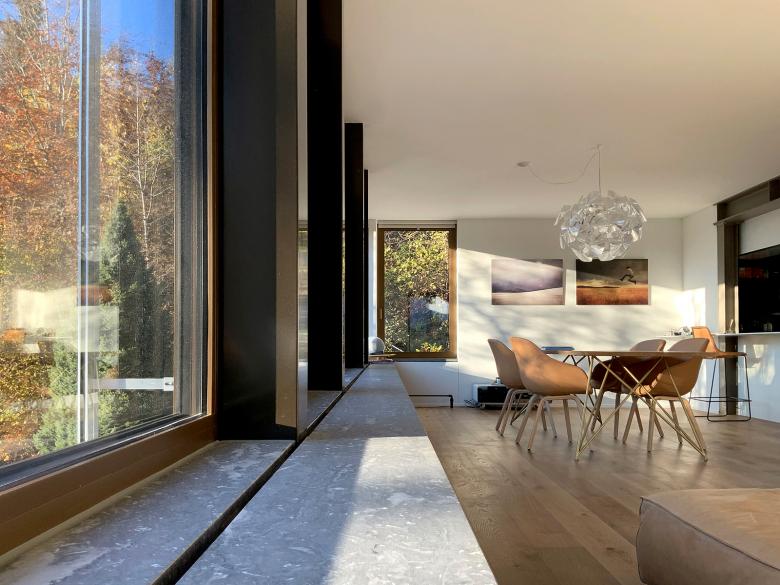 Das Haus am Kamellenberg wurde 1962 erbaut und 2013 letztmals einer Innenraumsanierung unterzogen. Wunsch der Bauherrschaft war es, sämtliche Fenster zu erneuern und wo möglich neue Fensteröffnungen einzubauen oder zu vergrössern. Aussen + Innenräume verschmelzen neu harmonisch zu einer stimmigen Einheit. Nach der Umbauphase Ende Sommer 2021 zeigen sich die beiden Wohngeschosse in einem völlig neuen Kleid - so verstehen wir Transformation im Bau.