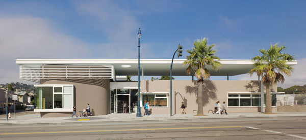 Design intent. This design for this branch library won a national competition held by the San Francisco Public Library in 2002 and construction was completed in September 2009. Located on an Ocean Avenue corner lot, the design consists of a main reading room, children's reading room, community room, staff support space and an outdoor garden. Adhering to the urban grid, the L-shaped scheme allows the main reading room and community room volumes to flank and define a central courtyard. The exterior has two major architectural elements: an egg-shaped room and the high canopy roof.