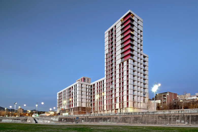 El proyecto incluye tres bloques de viviendas y nuevos espacios públicos que buscan abrir la ciudad al río. La mejora del río Besós inició un proceso de gran transformación en el municipio de Santa Coloma. Los edificios crean continuidades visuales entre el nuevo frente fluvial y la trama urbana existente. Se intenta que todas las viviendas gocen de óptimas condiciones de asoleo y vistas. Una fachada gruesa, entendida como 'espacio habitado', proporciona espacios de almacenaje y establece un filtro entre el interior y el exterior.