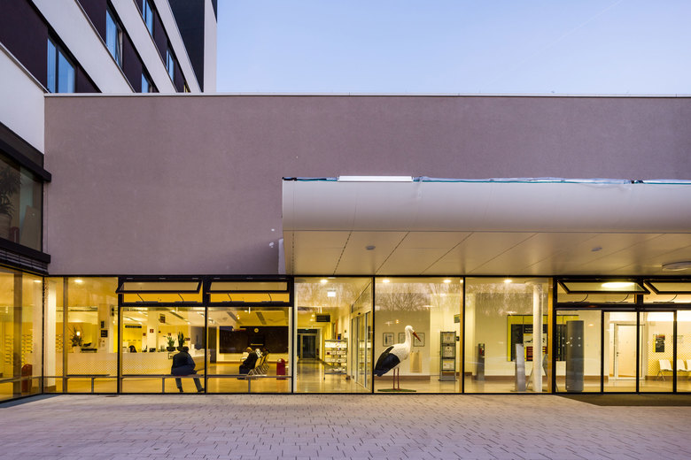 Die historisch gewachsenen Strukturen waren ungeeignet, eine zeitgemäße medizinische Versorgung sicherzustellen, daher wünschte sich der private Betreiber eine „Klinik der kurzen Wege“. Es entstand ein quadratischer Grundriss mit angehängten Bettenhäusern. Eine durchgängige Magistrale erzeugt ein kammartiges Wegenetz, welches zwei Tageskliniken und vier ambulante Operationssäle erschließt. Darüber befinden sich die Neonatologie, acht Operationssäle sowie die Normalstationen mit 560 Betten. Hierfür waren ein Neubau und ein Anbau erforderlich, ergänzt durch eine Landeplattform für Hubschrauber. Man entschied sich bei den Fassaden für eine schlichte, den Landschaftslinien folgende, horizontale Gliederung. Über wertige Farben und Materialien stellt sich eine helle, in Gelb- und Purpurtönen changierende Atmosphäre ein. Sie knüpft in abstrahierter Weise an die Höhenzüge des Schwarzwaldes an und greift zurück auf die Geschichte Pforzheims als Goldstadt.