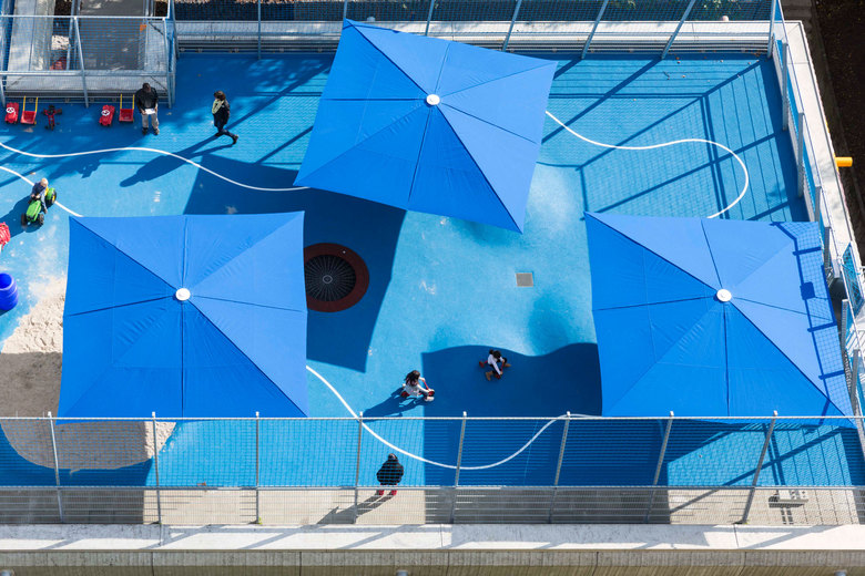 Bauliche Eingriffe gab es wenige: Die Sanitärräume wurden für die Kinder angepasst, die abgehängten Decken durch akustisch wirksame Holzwolleleichtbauplatten ersetzt, zusätzliche Türen sorgen für den Brandschutz. Weil die Freiflächen teilweise deutlich unter Straßenniveau liegen, wurde die ehemalige Patientendachterrasse in einen großen Außenspielplatz verwandelt. Und um einen barrierefreien Zugang zum Gebäude zu ermöglichen, war es leichter, von der Straße aus einen Steg ins Obergeschoss als eine Rampe ins Erdgeschoss zu bauen. Über den vorhandenen internen Aufzug sind nun alle sieben Gruppen erreichbar.