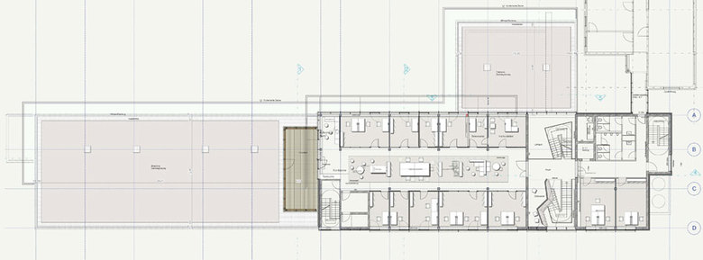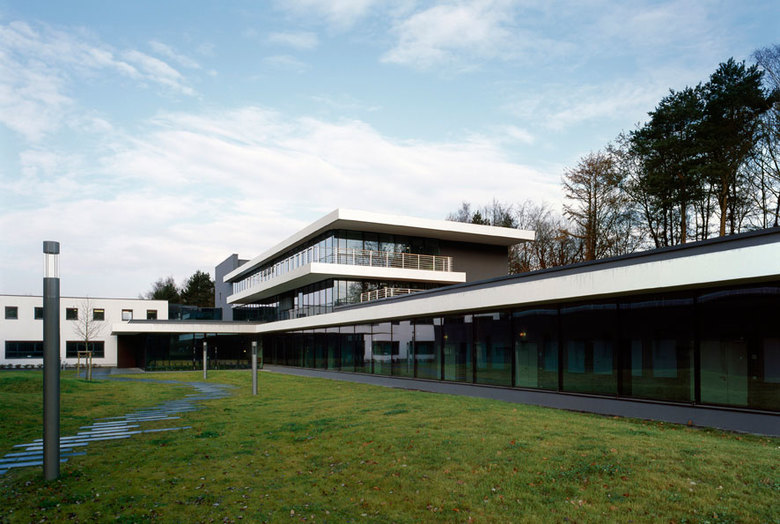 Durch ein Gastwissenschaftsprogramm bekommt die Forschungsarbeit neue Impulse, auch der wissenschaftliche Nachwuchs wird hier gefördert. Die Fassadengestaltung nimmt in Proportion und Materialität den Wunsch nach einem offenen, einladenden Gebäude auf. Bestimmendes Merkmal der äußeren Gestalt sind starke, auskragende Deckenscheiben, die an der Zugangsseite im Süden sowie zum Hof hin das Gebäude horizontal gliedern und dabei eine signifikante Fernwirkung erzeugen.