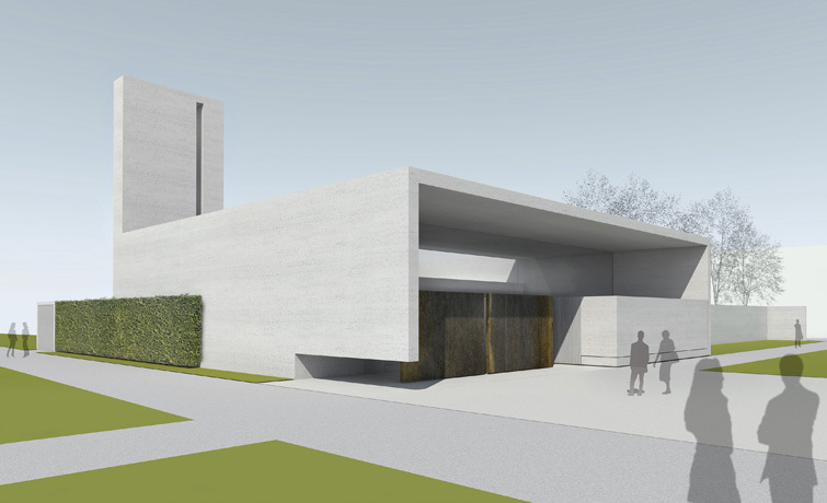 Über Schwellenbereiche wird deutlich gemacht, dass man einen Ort des Gedenkens betritt. Man lässt dem Besucher Zeit, sich beim Durchschreiten der Lindenallee darauf einzustellen, bis man auf eine offene Vorhalle für das Versammeln vor der Kremierung trifft. Bei aller Solidität des Baukörpers wird durch den Abstand vom gewachsenen Terrain eine Leichtigkeit vermittelt, die den Besucher aufrichten soll.