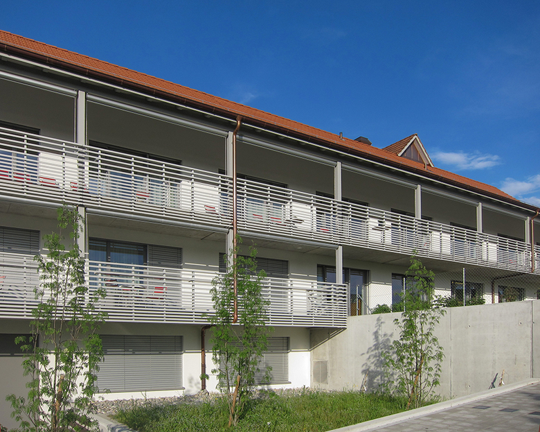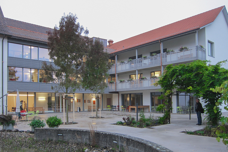 Die bestehende Anlage wird durch einen Anbau erweitert. Der neue Flügel ersetzt den Trakt mit der ehemaligen Heimleiterwohnung und orientiert sich gegen Südwesten. Er beherbergt zweimal 7 neue Zimmereinheiten. Es entsteht ein geschützter Aussenhof, der sich gegen den alten Dorfkern hin öffnet. Mit dem Anbau entstehen im 1. und 2. Obergeschoss zwei identische Pflegeeinheiten mit je 21 Betten. Neu entsteht eine Demenzabteilung mit geschütztem Aussenraum. Die Gebäudehöhe wird beibehalten, wodurch die Dachlandschaft intakt bleibt. Die geplanten Anbauten sind formal zurückhaltend gestaltet und wollen die vorhandene Architektur nicht konkurrenzieren. Die neuen Räume werden mit einer kontrollierten Lüftung ausgerüstet. Der Erweiterungsbau ist nach den Anforderungen der Minergie - Zertifizierung geplant. Das bestehende Gebäude kann mit zusätzlicher Isolation der Dachflächen die Minergieanforderungen erfüllen.