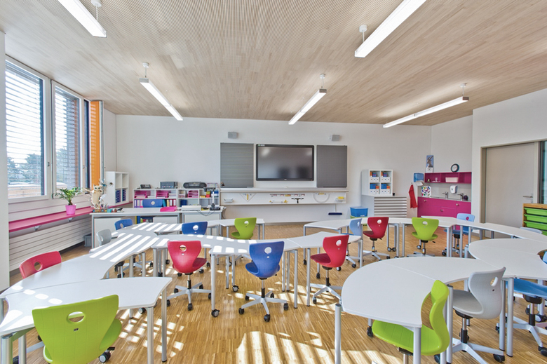 Auf eine mechanische Lüftung der Klassenräume im Schulhaus wurde in Anbetracht der privilegierten Lage am Waldrand und im Hinblick auf die Kosten verzichtet.