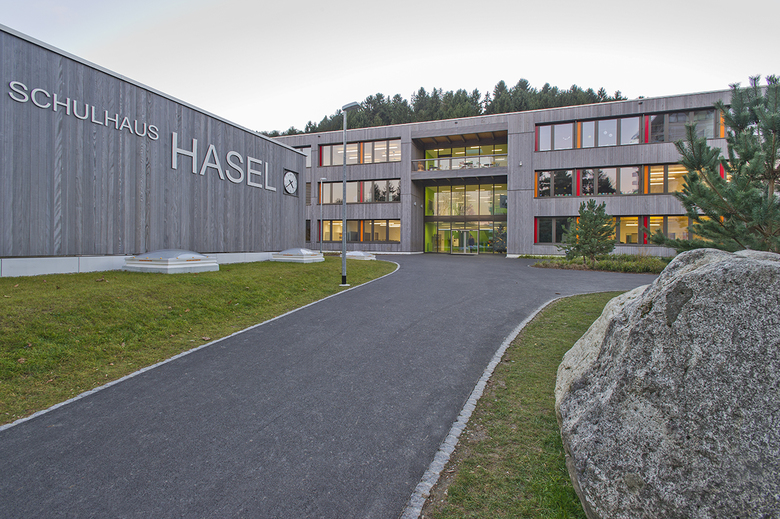 Bei der Materialisierung (beispielsweise Gummigranulatböden in den Verkehrsbereichen und Industrieparkett in den Klassenräumen) wurde Wert auf Langlebigkeit und funktionalen Nutzen gelegt. Von weit her sichtbar ist die vorbewitterte und hinterlüftete Holzfassade
