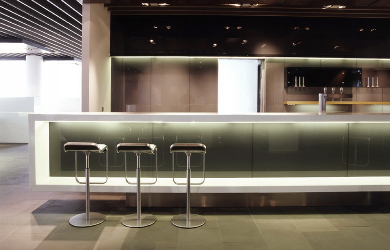 2003 wurde das Büro Hollin+Radoske beauftragt, ein neues Loungekonzept für die Deutsche Lufthansa AG zu entwickeln und die ersten Lounges am Flughafen Frankfurt zu bauen. Das Design wurde modular aufgebaut, da es in die unterschiedlichsten Räumlichkeiten im Bestand implementiert werden muss. Aufgrund des jeweiligen Raumzuschnitts, Budgets oder Nutzungsprofils können einzelne Module ausgewählt und zu einer Lounge geformt werden. Zu den Design-Modulen gehören z.B. verschiedene Raumteilersysteme, Deckensegel, verschiedene Wandoberflächen, Objekte im Raum und Bodenbeläge, die je nach Anforderung gezielt eingesetzt werden können. Die Richtlinien und Detailpläne wurden in einem umfangreichen Design-Manual fixiert, mit dem zukünftige Lounges geplant werden können. Um das modulare Design hochwertig, markant und funktional zu halten, folgt das Design bestimmten Grundsätzen wie leichte Orientierung, subtile Corporate-Identity, Wiedererkennbarkeit und Modularität.