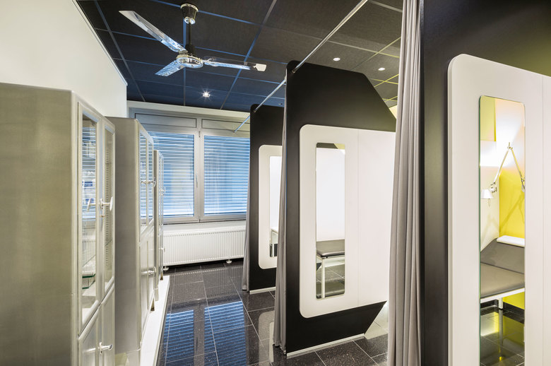 Hollin + Radoske wurden mit der Gestaltung einer ambulanten chirurgischen Spezialpraxis im Frankfurter Ostend betraut. Das Ergebnis ist ein hochwertiges und unverkennbares Raumkonzept, dass den hohen Hygiene- und Organisationsstandards einer chirurgischen Arztpraxis gerecht wird und zugleich einen professionellen und beruhigenden Eindruck beim Patienten hinterlässt.