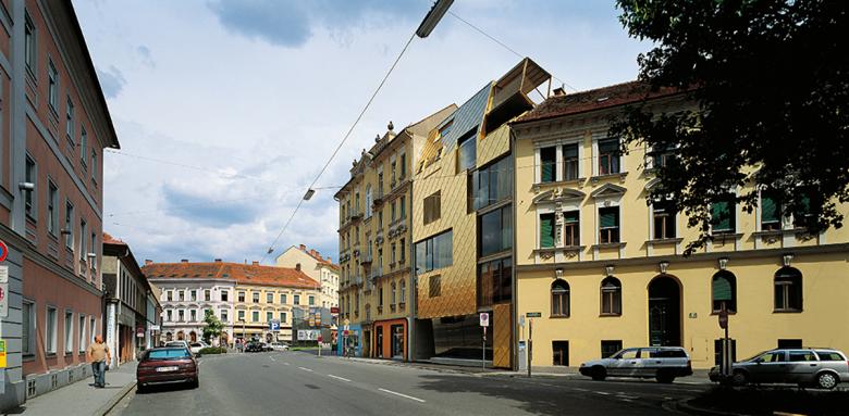 Was passiert, wenn INNOCAD einer wichtigen Durchgangsstraße in einem Stadtzentrum ein starkes Architektursymbol als Katzenecke hinzufügt? Indem Design als Kontext verwendet wurde, um eine Aussage zu treffen und strukturelle (hohe Brandmauern von Wohnblöcken aus dem 19. Jahrhundert) und philosophische Probleme (zeitgenössische Architektur in einem konservativen, historischen Stadtbild) zu berücksichtigen, versuchte INNOCAD, ein klaffendes Loch in der Straßenszene zu schließen viele Jahre. Der Neubau bringt die Lücke dessen zum Vorschein, was im Grazer Stadtbild fehlt. Durch das Füllen dieser Leerstelle erhalten Architektur und Gebäude eine „Durchlässigkeit“, die den Blick in die räumliche Tiefe und gewissermaßen einen Durchblick ermöglicht und gleichzeitig Licht durchscheinen lässt.
