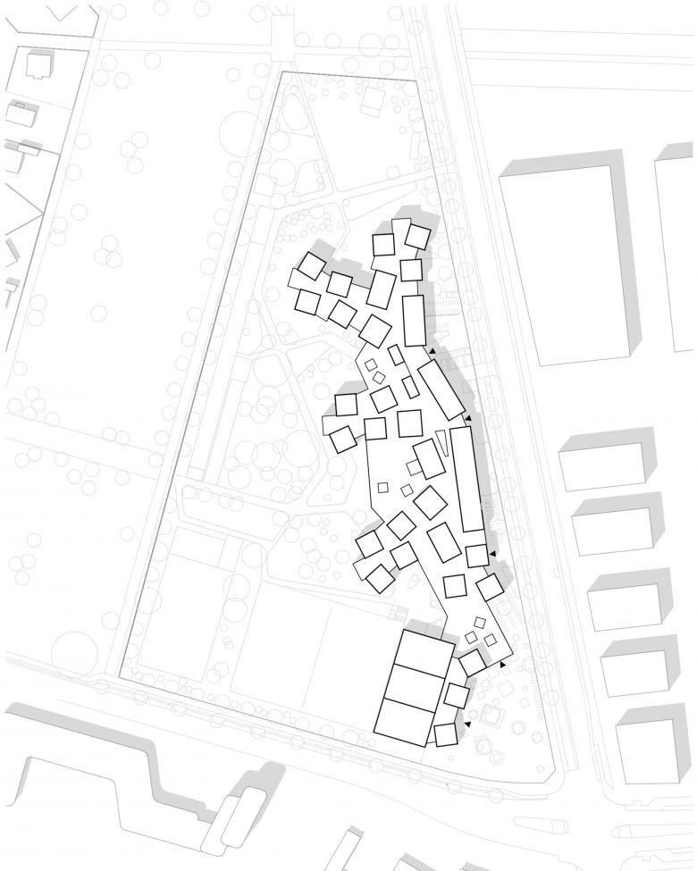 Das Konzept "Schule im Park – Park in der Schule" bildet die Grundlage des Entwurfs: Die organische Gebäudestruktur verschmilzt mit der Natur und schafft so fließende Übergänge zwischen Innen- und Außenräumen. Von der Hermann-Dorner-Allee bis hin zum grünen Freiraum orientieren sich die Lern- und Gemeinschaftsräume bewusst zur Natur und eröffnen den Schülern lichtdurchflutete, gut belüftete Räume, die zur Identifikation und Aneignung einladen. Gleichzeitig vermittelt die städtebauliche Körnung zwischen den nahegelegenen Einfamilienhäusern und dem Gewerbegebiet jenseits der Allee.