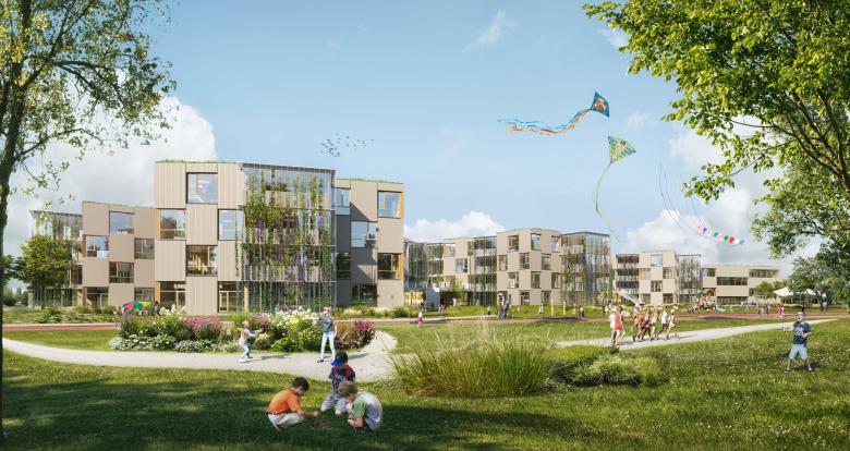 Der „Lernkiez im Park“ ist ein beispielhaftes Projekt für die Wissensgesellschaft von morgen: ein Lern- und Lebensraum, der die individuellen Bedürfnisse der Schüler in den Mittelpunkt stellt und durch Architektur, Freiraumgestaltung sowie innovative Konzepte überzeugt – und dafür den 2. Platz im Wettbewerb erreicht hat.