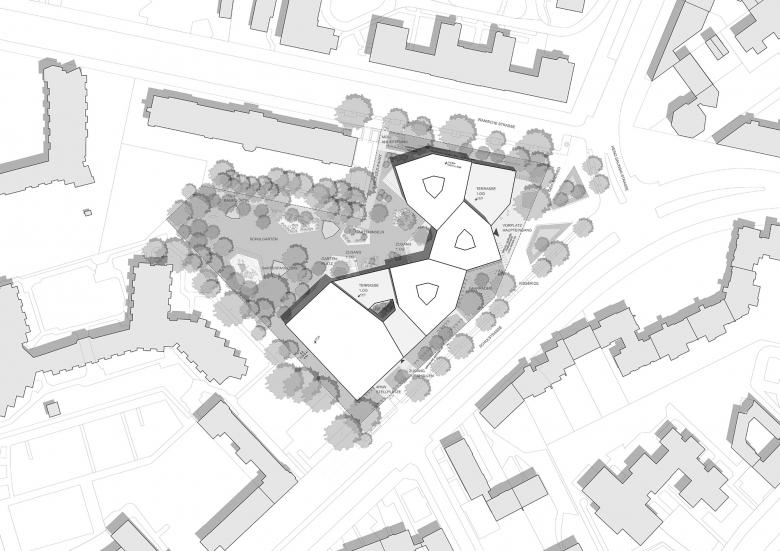 Der Neubau des Gymnasiums in der Schulstraße in Berlin-Wedding integriert sich durch seine klare Gliederung und vielseitige Architektur in das heterogene städtische Umfeld. Das Konzept des „Lernkiez im Quartier“ schafft eine enge Verbindung zwischen Schule und Stadt, wobei die Schule in kleinere, identifikationsstiftende Einheiten unterteilt wird. Durch die flexible Raumgestaltung und die modulare Bauweise wird ein anpassungsfähiges Gebäude geschaffen, das zukunftsorientierte pädagogische Konzepte unterstützt. Die Verwendung von Holz und Beton als Baumaterialien fördert Nachhaltigkeit, während die großzügige Tageslichtnutzung und vielseitigen Außenflächen, wie grüne Dächer und Garteninseln, das Wohlbefinden und das Mikroklima verbessern.